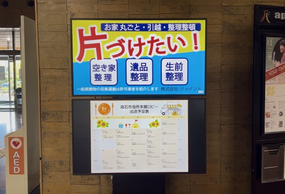高石市役所1Fロビーにて広告の放映が開始されました✨