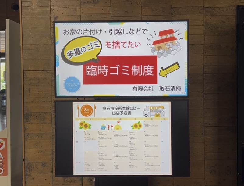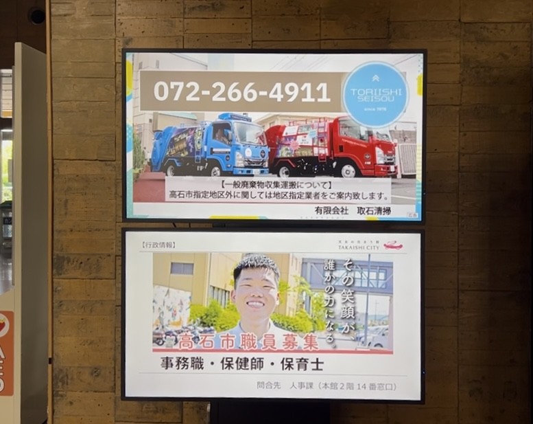 高石市役所1Fロビーにて広告の放映が開始されました✨