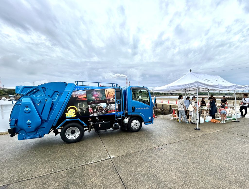 弊社でお手伝いさせていただいた内容は ①『海洋ごみ × 木の廃材』で作るアート体験 ②ラッピングごみ収集車の展示 の予定でしたが、当日に急遽 ③ごみ収集車の乗車体験 ④ごみ収集車の展回披露 を追加で行いました👌