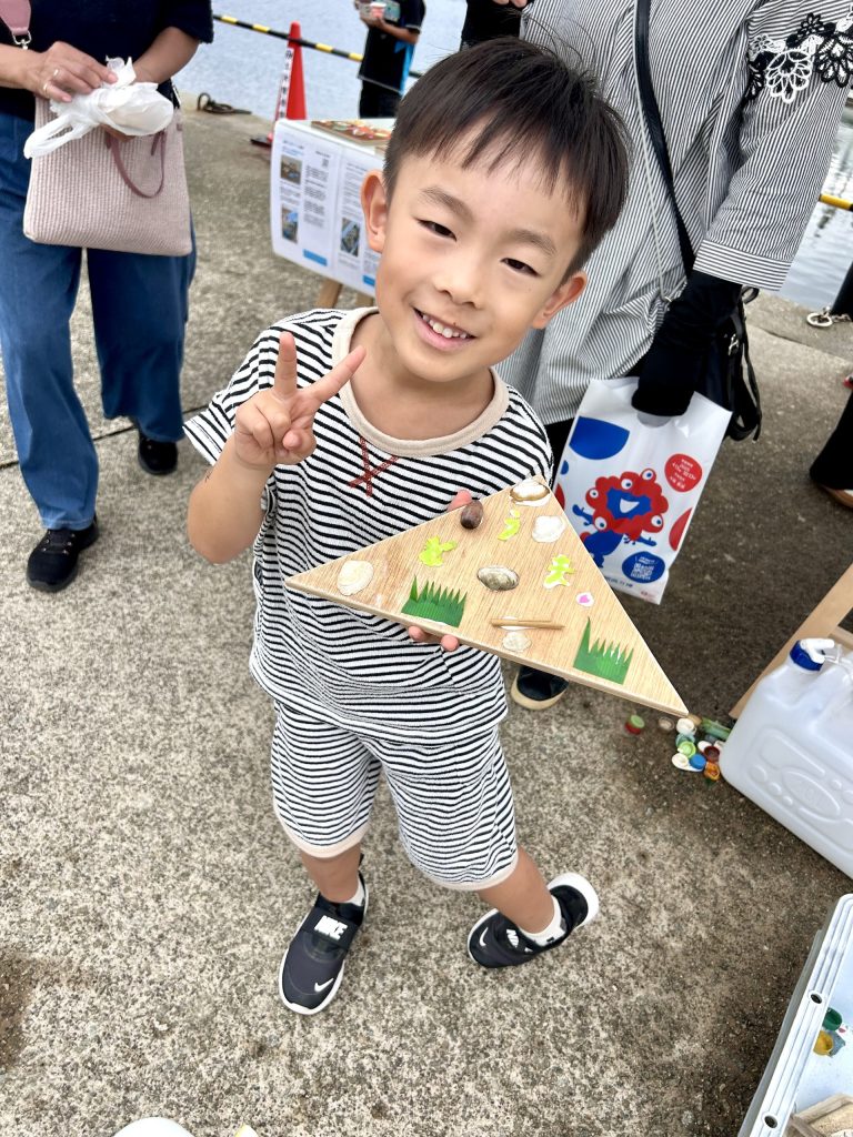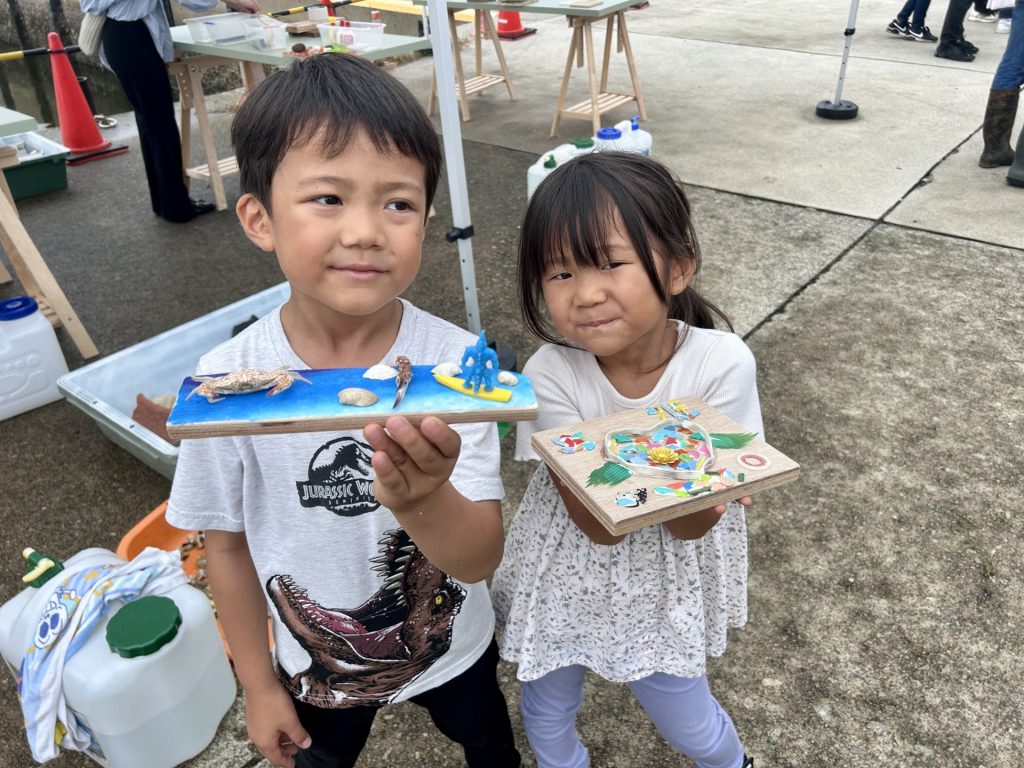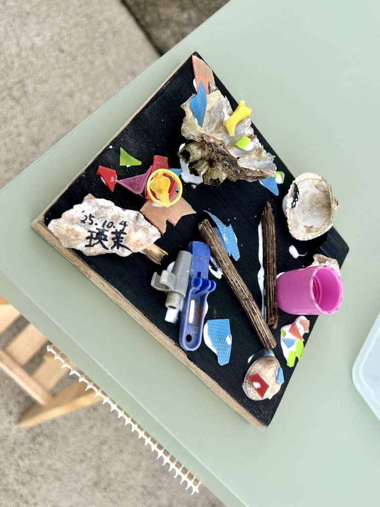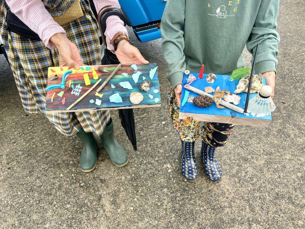 お気に入りの『木の板』を選んで、貼りたい『海洋ごみ』や『貝殻』を選んで、楽しそうに作ってくれていました✨ 作品にはみんなのアイデアがいっぱい詰まっていて、こちらも楽しめました✨
