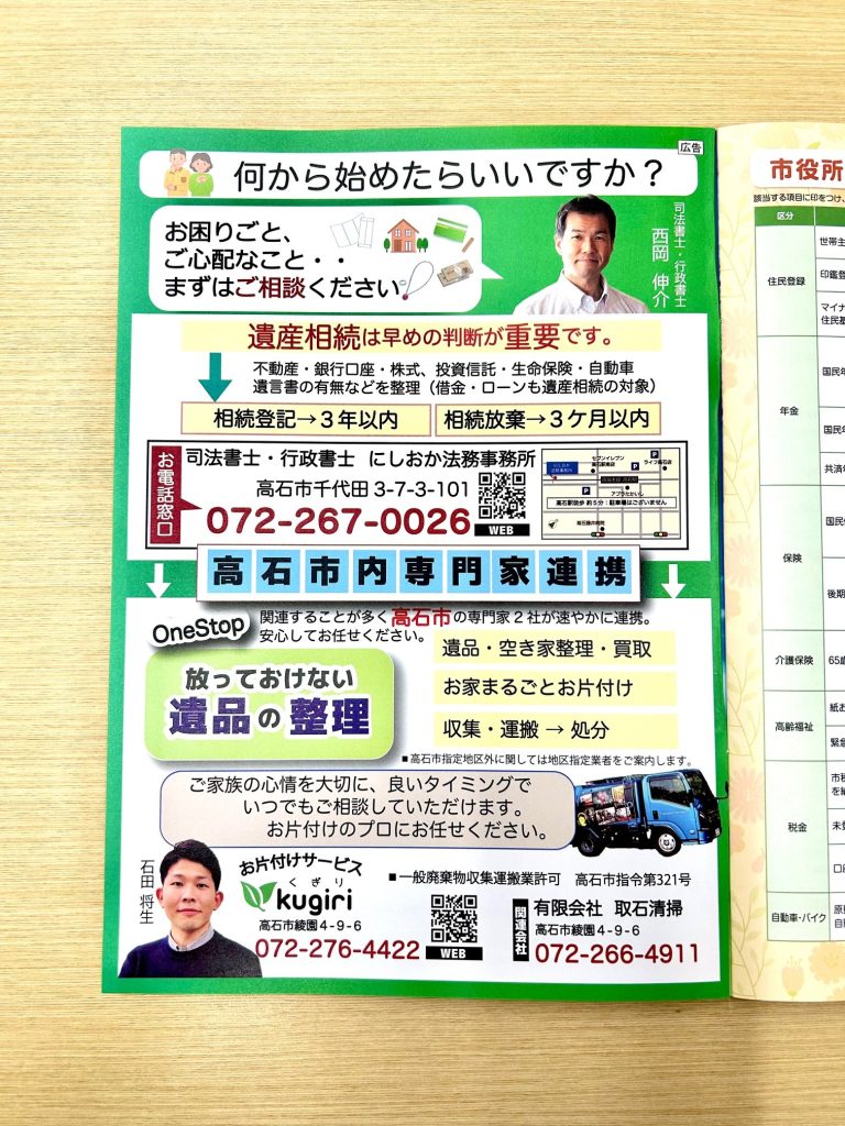 『おくやみハンドブック 高石市』への掲載について