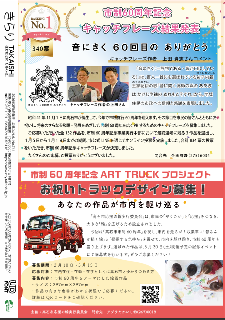 ~ 当プロジェクトは高石市広報『きらり』2月号の裏表紙にて掲載されております ~